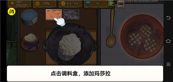 1、玩家每天都会接到各种客户,每位客户都有耐心值,做饭做的太久会消耗耐心值。2、耐心值越低小费给的就越低(也有一大部分取决于材料)当你看不懂某些客人要的是什么这个时候。