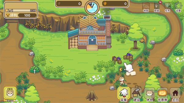 作为一款画风治愈,玩法上也比较轻松自由的游戏,猫咪露营地这款游戏可谓别具匠心,以全新的素材和模拟经营玩法深深的吸引着大家的眼球,期间你不但需要通过收集的资源和花费货币来建设更加健全的露营场所,发布海报来吸引顾客来仓管旅游,而且一些农场牧场的玩法也有所涉及,而玩家主要的目标就是通过这个露营之地来赚取更多的收益,期间各种设施的健全,食物的贩卖等等都是盈利的关键。【基本玩法介绍】