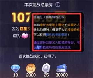 巨星艺人是可以作为核心培养的类型艺人,拥有3个擅长剧本和5个擅长角色,自身属性值也是高于其他类型的艺人,而且只有巨星、超巨两类艺人才可以升星,并且拍摄巨星类型擅长的片钟是可以在结算首映的时候增加票房。
