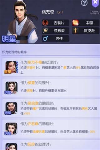 明星级艺人可谓是艺人中的中流砥柱,不仅可以上阵拍电影,也可以下场当助理,自身拥有3个技能与各不相同的擅长角色与剧本,加上明星合同较为容易获得,建议培养您的擅长片类型的明星。