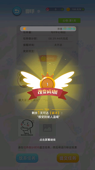 值得一提的是,闪亮的我最新版中还提出了一个响亮的口号,那就是“让行动更轻松”。不管是每天一个俯卧撑、阅读一页书或者是其他任何小事都可以在这里设定为你的短期目标,可能很多小伙伴都会问,这样一点点能减肥、健身、进步吗?但你千万不要小看微行动的力量!微行动在于顺应人性,实现改变。因为行动的准备和开始是最难的,不会因为想一口吃成胖子,或者是目标太高导致中途放弃。既然开始不会仅仅只做“一个俯卧撑”,多出来的都是满满对自己的成就感!由此观之,能轻松开始、轻松坚持,理解自己并实现改变本身就不容易,但好在闪亮的我游戏不仅全面贯彻该思路,并且将这些小目标都可以制定成游戏任务,以提高玩家执行它们的积极性,感兴趣地小伙伴可以前来下载一试!