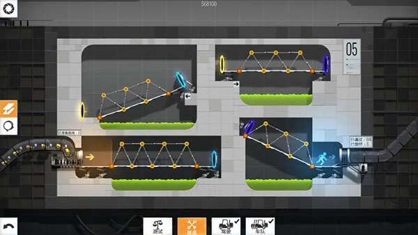 3、在桥梁建筑师传送门中文版中利用传送门、光圈弹射板、动力凝胶、排斥凝胶等完成复杂的任务。