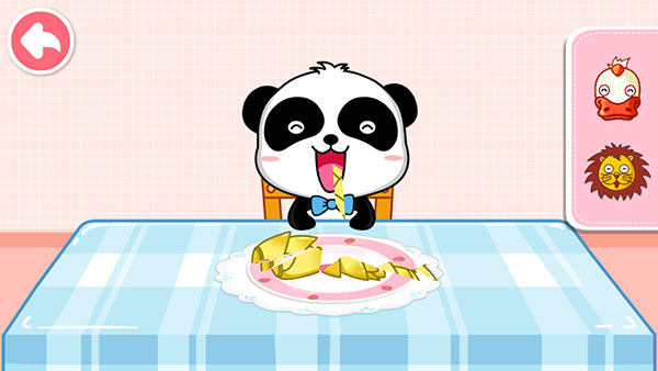 8、最后拖动盘子里的食物喂给动物小宝宝吃就可以了。