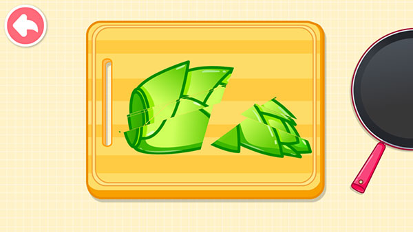 1、切菜:认知水果蔬菜和肉类宝宝手指点点滑动屏幕,就像画画互动一样,专注地处理奇妙美食,爱上吃饭。