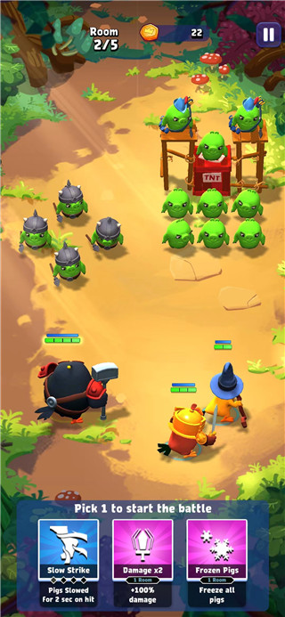 在实时战斗中战略性地重新定位您的羊群,以躲避猪的攻击,或放置您的鸟进行完美定时的特殊攻击。