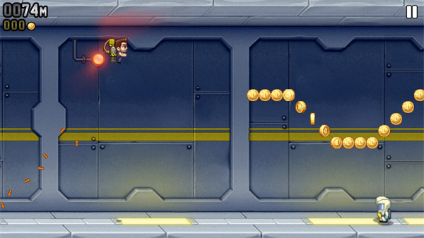 不仅如此,火箭飞人游戏不仅画面清晰流畅,更有多种精美的场景,而且游戏中金币的华丽阵容,和各种道具功能使用的华丽体现,给予玩家一种很强的视觉冲击效果,使得玩家在玩游戏的过程中不会感觉厌倦乏味。除了画面,游戏的配乐风格也非常的另类,金属摇滚风格的游戏背景音乐,夹杂着枪林弹雨的扫射声,增添了玩家在玩游戏时激烈紧张的游戏氛围,增加了游戏的趣味性。火箭飞人作为一款集跑酷、射击于一体的休闲类游戏,玩法是相当给力,有兴趣挑战的朋友们快来试试吧!