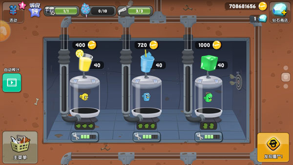 3、僵尸榨汁机中拥有丰富的僵尸种类以及多样的外星生态环境,可以不断的捕捉僵尸制作更多的果汁,扩大工厂