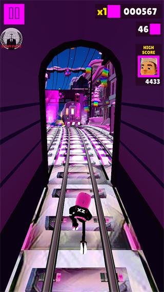 1、控制主角在道路上跑酷,途中会遇到各种各样的障碍物,选择安全的道路,并且躲避它们。