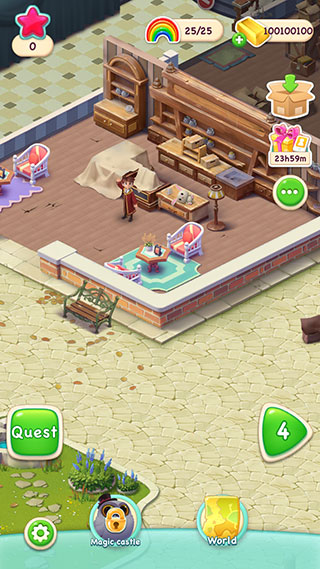 5、然后在主界面,点击左下角的任务按钮,消耗星星来翻新庄园。