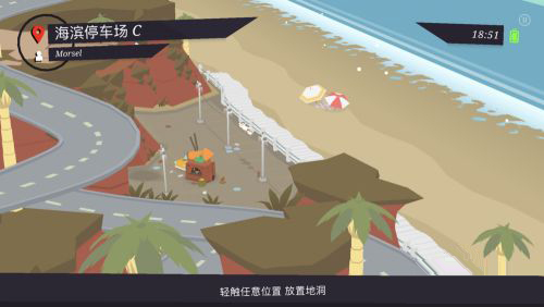 1、在甜甜圈都市游戏中很多小伙伴都在问烟花怎么过?其实烟花这个场景也就是海滨停车场C的关卡,这一关可以说是将烟花运用的淋漓尽致,首先我们点击任意位置放置地洞。