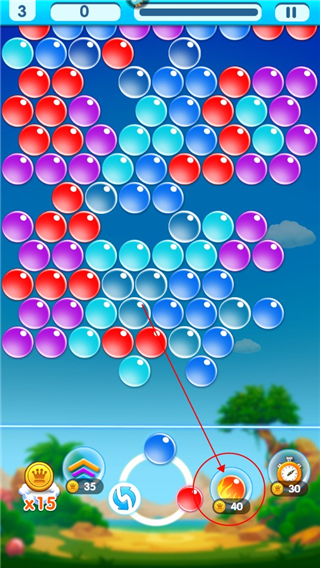 还有个不得不说的技巧就是穿泡。所谓穿泡,就是把泡泡打到空着的洞中。这个的确可以做到的,要用到十分精确的角度。其实熟练了你会发现,其实很简单,把指针指向空隙的最中间,洞如果在左边就微调到左边一下就可以, 发射后就会直接穿到洞里面。还是那句话,多加练习就会成功,毕竟《泡泡龙》作为游戏没法仅仅建立在理论基础上。有玩家会说,可是我就是手残啊!怎么破?那么这里又要提到上文说到的指针道具了,指哪打哪,简直神准,距离感不太好的小伙伴可以备着,绝对是通关利器。