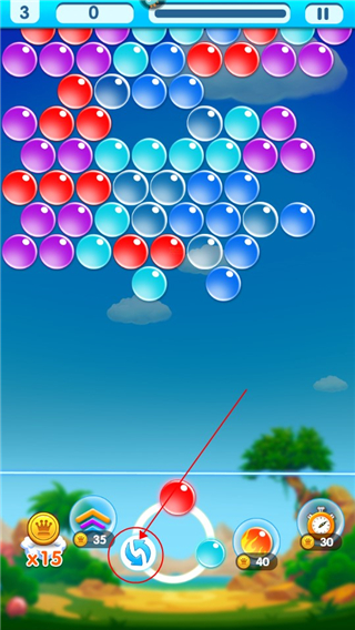 游戏中有泡泡道具和特殊道具,可以进行2种道具的切换,使用特殊道具的顺序是从左到右地使用的。