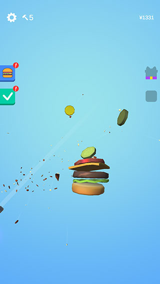6、切开的过程非常解压,有着食物碎片飞溅的效果。