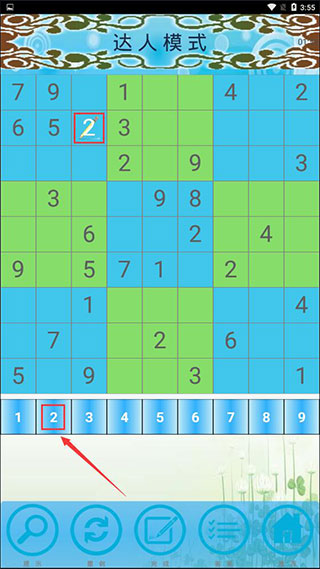 2、选中之后,再点击下方的任意【数字】即可填入,这时候我们可以看到数字2已经成功填入铅笔处。