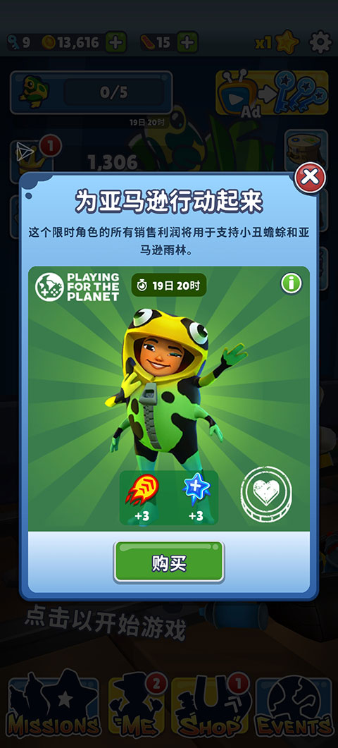 除此之外,在地铁跑酷里约热内卢国际服中,你需要为亚马逊雨林贡献你的力量!Yutani独家小丑蟾蜍套装,是专为这次活动打造的限定服装,融入了独特的蟾蜍元素,让你可以隐藏在雨林中,保卫亚马逊野生动物。另外,除了保卫亚马逊雨林,你还可以通过解锁Jamanta的新滑板,前往水下世界收集活动金币,为滑板提升力量做好准备,以便可以随时加入清洁海洋的战斗,所以大家还在等什么,感兴趣的小伙伴赶快来下载体验吧。