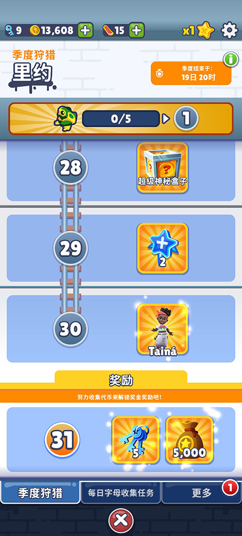 5、大家将季度狩猎从1级提升到30级,即可获得全新人物Tainá。