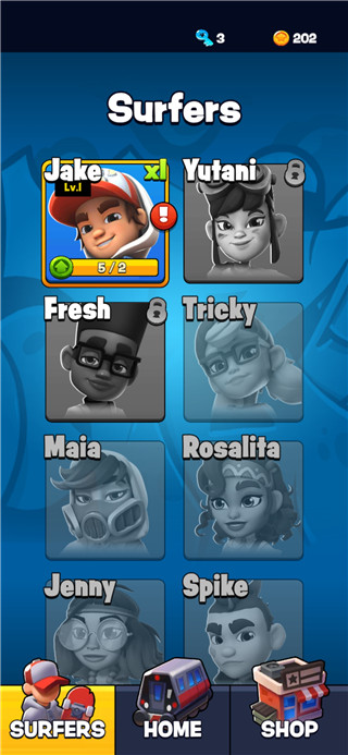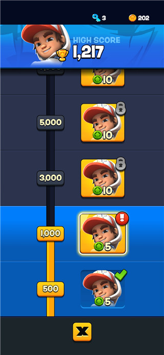 6、跑酷分数越高就能获得更多的升级奖励,每个·角色都有着技能系统。比如杰克一阶段技能位获得一个磁铁,二阶段捨取金币就能为滑板充能,三阶段开始游戏就可以获得一块滑板。