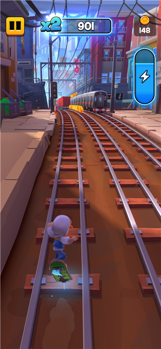 在城市街道上冲浪,试图逃脱无情的守卫。尽可能快地奔跑,同时收集大量金币和惊人的能量提升,成为下一个悬浮滑板英雄。投入行动,记住:不要停止奔跑!