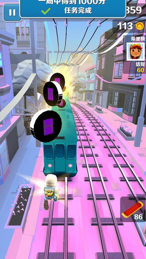 地铁跑酷星辰之城版本是快手“星小辰”制作的一款魔改版本,由原版游戏《地铁跑酷》修改而来,在这个版本中,地图的颜色得到了改变,在原版基础上添加了粉色的元素,金币也替换为了酷炫的黑色和紫色印花金币,总体看起来非常有特色。地铁跑酷手游可以让你放松心情和减压。在现代社会中,我们都面临着各种压力和困扰,有时候需要找一个途径来释放一下情绪。地铁跑酷手游就是一个很好的选择,你可以在游戏中尽情奔跑,享受速度和自由,忘掉烦恼和忧虑,给自己一个轻松的时刻。游戏场景和角色都采用了高清精致的画面设计,给人带来视觉上的享受,同时可以让你体验不同的地铁风景和文化。游戏的操作简单易上手,只需要通过左右滑动等基本操作即可完成角色的奔跑、跳跃、下滑等动作。尽管如此,游戏仍然相当考验你的反应能力和手眼协调能力。感兴趣的朋友快在本站下载吧!
