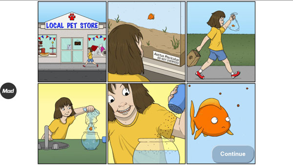 3、一开始是故事发生的背景,我们可以点击按钮,然后直接跳出水池,开始游戏。