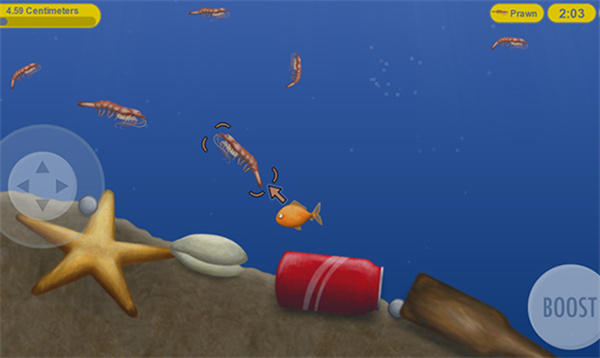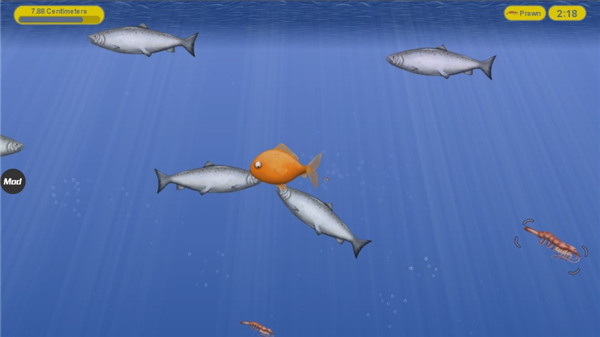 一条机智的小金鱼,食欲不振,在被好心的主人投喂之后跳进了海里,开始在大海里试图吃掉世界!它逃到大海里开始失去了控制,并且越吃胃口越大,没有什么是不可以吞入腹中的,整个大海里的生物都可以是它的食物!基本操作: