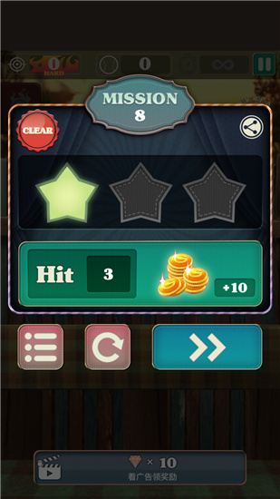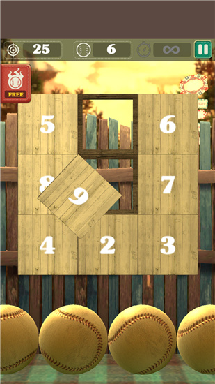 1、球限制模式:击中罐头,打破盘子,打分目标,击中果实。