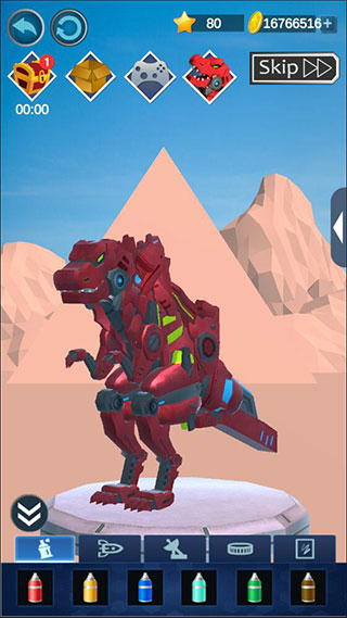 说到这个喷涂功能,那就得好好说明一下了,它不像其它同类型的拼装游戏一样,想要喷涂上色只能将整个模型全部喷上同一种颜色,毫无自由度可言。而机械恐龙组装游戏中的喷涂可以具体到每一块零件上,也就是说,游戏中的所有零件,你都可以改变它们的颜色,再考虑到游戏中还为玩家们准备了非常多的颜色可供选择,因此你拼出来的机械恐龙可以说是全宇宙中独一无二的一款了!当你拼装好了之后,游戏还提供了冒险玩法供你测试恐龙的战斗力,你还能从中收获不少金币等资源。总之这款游戏玩法简单明了,适合大多数玩家,你还不赶紧来下载试试!