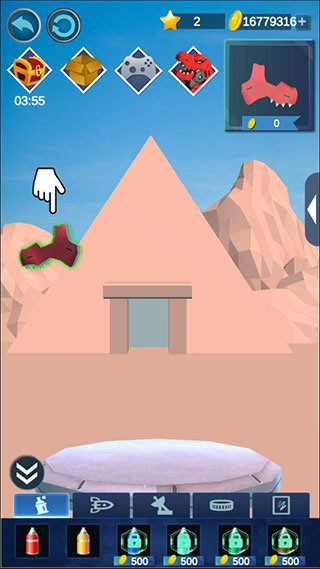 1、组装的零件都是分散的,尝试组装一个强大的机械霸王龙。装配完成后,可以使用多种必杀技。2、前期你需要将几个喷火霸王龙的重要部件放置在一起,根据技能进行叠加。