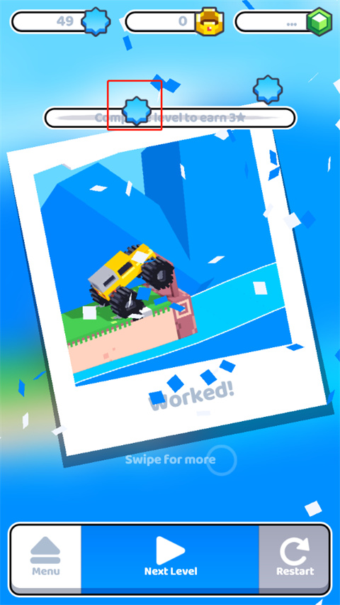 4、当图标内的关卡都通关后,图标会升起一个小旗帜代表你以全部通关;