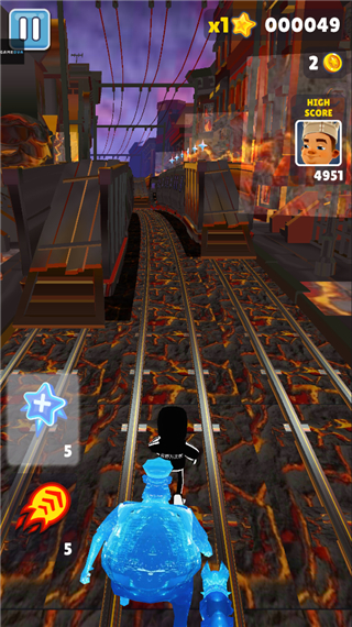 地铁跑酷万次郎17.0版本是由国内大佬制作的《地铁跑酷》万次郎系列魔改版本之一,该版本背景贴图修改为岩浆风,整体看上去非常酷炫,同时还将金币修改为小星星,人物形象全部进行修改,也采用炫酷的岩浆贴图制作,甚至是道具都是粉色的,不仅是给玩家们带来不一样的视角体验,同时趣味性也变得更加高。另外,地铁跑酷万次郎17.0定制版的玩法基本上还是跟其他版本的地铁跑酷一样,通过上下左右滑动来控制角色在地铁轨道上奔跑跳跃,上下滑动来避开障碍物或者收集金币,还可以使用磁铁、跳跃鞋、喷气背包等道具为大家带来更好的游戏体验!