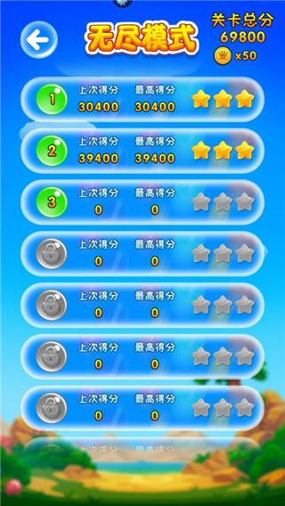 1、无尽泡泡龙消消乐游戏中有超多关卡,1200多关等你来闯!大家事后还会升级提升关卡。