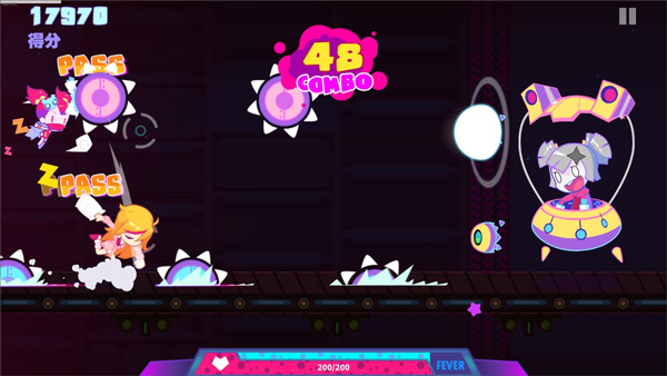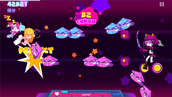 Tips:由于连击有分数加成,达到50Combo时就有1.5倍分数加成,不管使用哪个角色尽量不要断连,有些地方实在不会玩宁愿牺牲准确率糊过去也别断连。