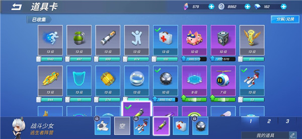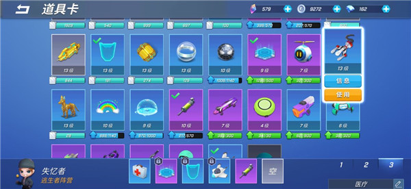 医疗包【锁】,雷【锁】,自走球【锁】,疾跑,车,护盾