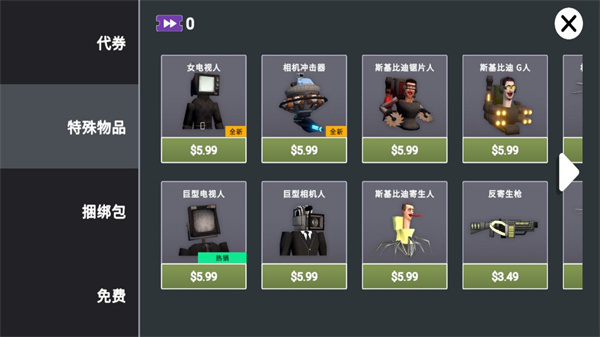 1、下载并打开进入游戏主界面,可看到提供有沙盒模式、【SKIBIDI DJ】、【TITAN TVMAN】和【TITAN SPEAKERMAN】四种游戏模式可选择