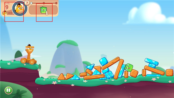 4、右上角可以查看小鸟和小猪的剩余数量,玩家需要在消耗完全部的小鸟之前消灭小猪。