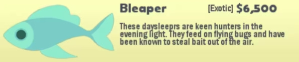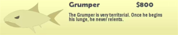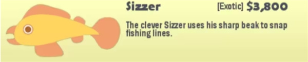 行为:来回游动,如果发现同伴 Sizzer和孩子Baby Sizzer上钩,它会咬断你的鱼线。