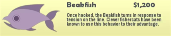 行为:会跟着你的船,不断跃出水面,当你抛竿时,它会偷走鱼饵。