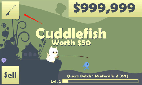 7、当等级升级到2级时,点击左上角的鱼竿图标;