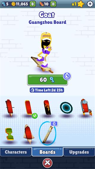 玩家们在游戏中会收集众多金币,可以利用这些金币到游戏商店中购买技能和道具,道具主要有加速、磁铁、滑板等。