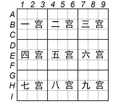 数对占位法指的是在某个区域中使得某两数只能出现在某两格内,这时虽然无法判断这两个数字的位置,但可以利用两数的占位排斥掉其他数字出现在这两格,再结合排除法就可以间接填出下个数字。
