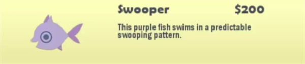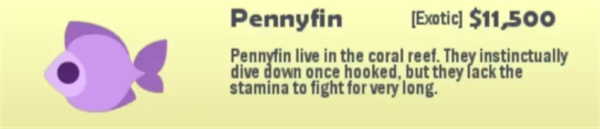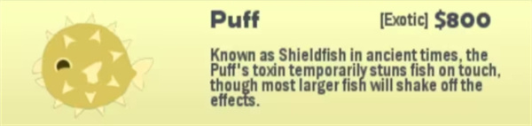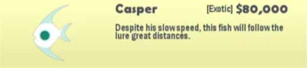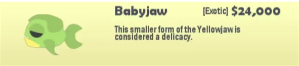 钓法:需要小型鱼饵,靠走位,不要让Yellowjaw先咬到钩,绕圈圈让它的孩子上钩。