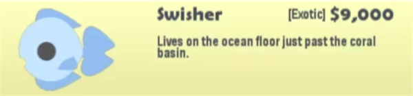 钓法:需要小型鱼饵,最好先把Sizzer钓上来,要不然你的鱼线会被咬断。