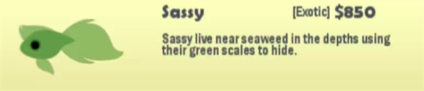行为:悬停在原地,可能是移动速度太慢了,作为活鱼饵,钓到它以后,可以直接钓Lionfish,还可以钓大型鱼,因为它相当于大型活饵。
