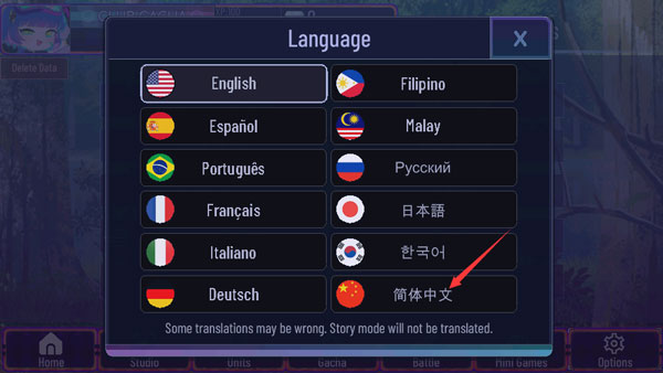1、在本站下载安装加查艺术作品最新中文版2023,运行游戏,选择右下角的“language”;