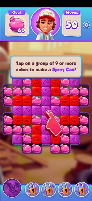 使用超强Subway Surfers充能,例如超级弹力鞋、跳跳棒、滑板和喷气背包,粉碎消除游戏关卡。