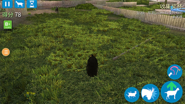 5、虚拟按钮控制山羊的行为,并灵活地使用牛角和蹄,这使得打败人类和其他动物变得容易。
