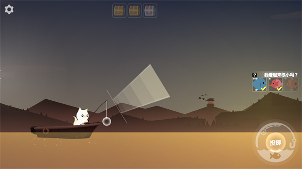 3、点击“投掷”,甩出鱼钩,同时通过长按“投掷”的时长控制甩出钩的力度。