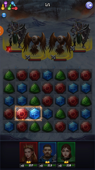 5、游戏中,玩家可以通过将两个元素进行交换,一排三个或以上的元素即可派兵攻击;