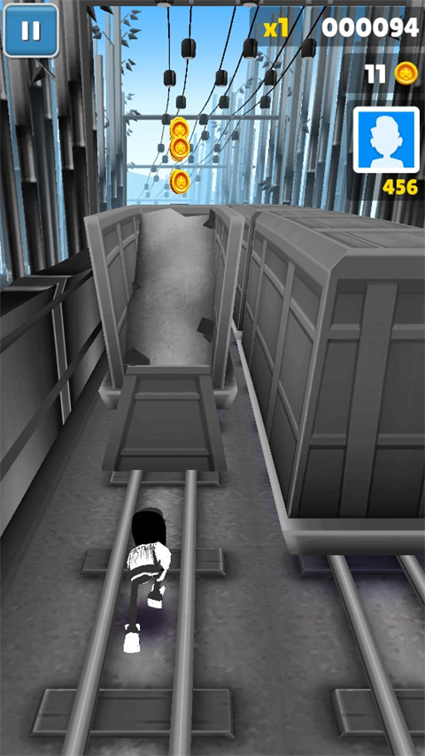 14、当你在3条火车轨道上接金币时,最后一辆火车速度是最快的。
