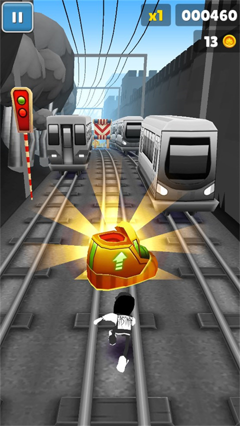 3、地铁跑酷很多道具都会对跳跃产生影响、比如跑鞋、助推器、跳跃道具等、特别是跳跃道具、可以跳到上方吃到很多金币、但是下落时、需要及时变更方向。